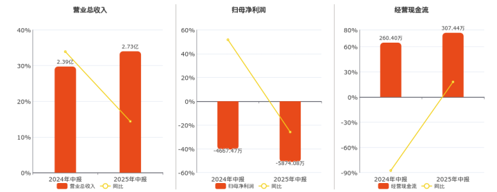 公司营业总收入为2.73亿元,较去年同报告期营业总收入增加3434.34万元,实现2年连续上涨,同比较去年同期上涨14.37%。归母净利润为-5874.08万元。经营活动现金净流入为307.44万元,较去年同报告期经营活动现金净流入增加47.04万元,同比较去年同期上涨18.07%。